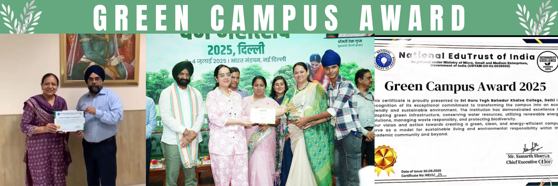 Sri Guru Tegh Bahadur Khalsa College boasts of an outstanding student and faculty body who are always striving to achieve qualitatively better milestones. In recognition of such efforts, the college has numerous awards to honour and encourage the students who have performed outstandingly in academics, sports, or cultural arenas in a respective year.